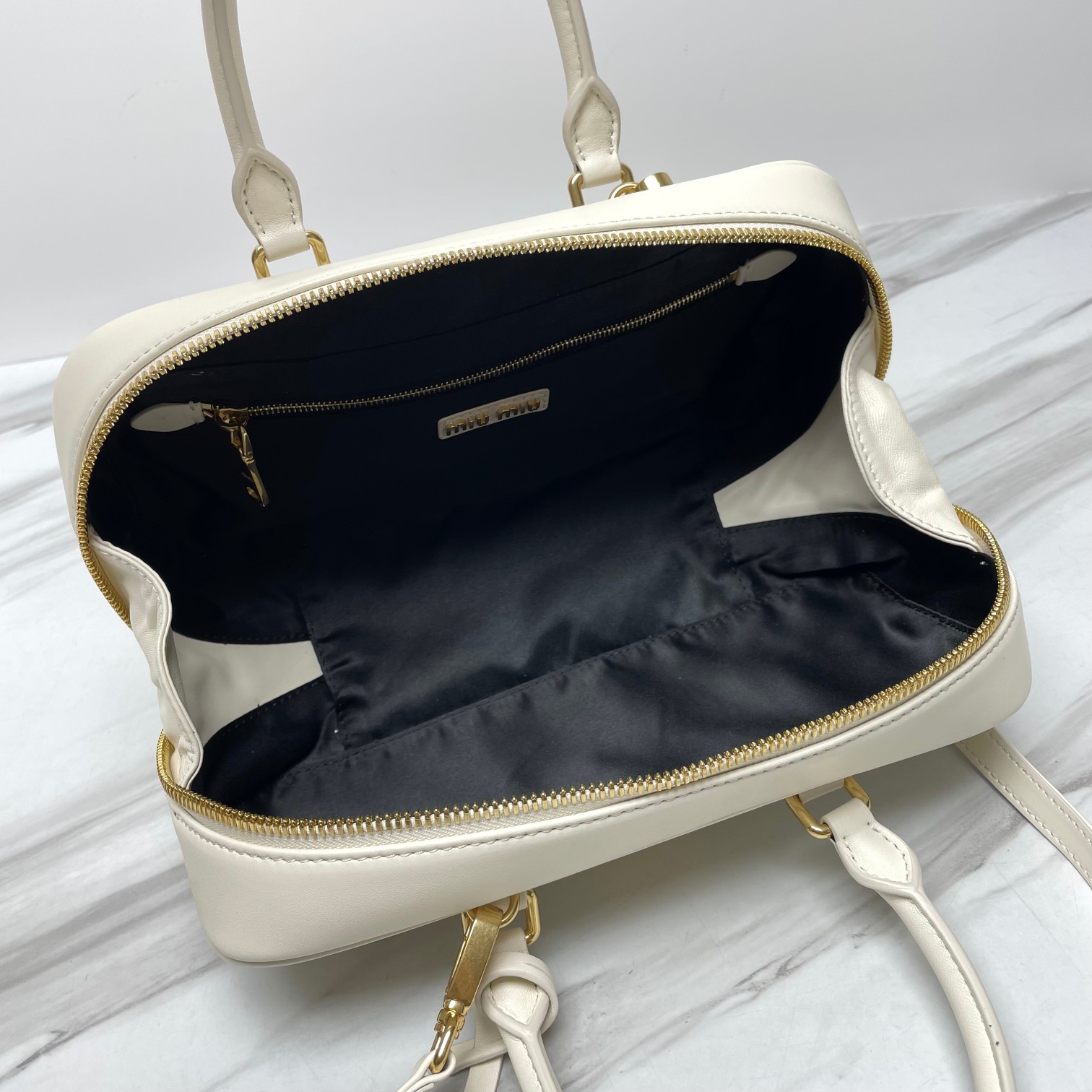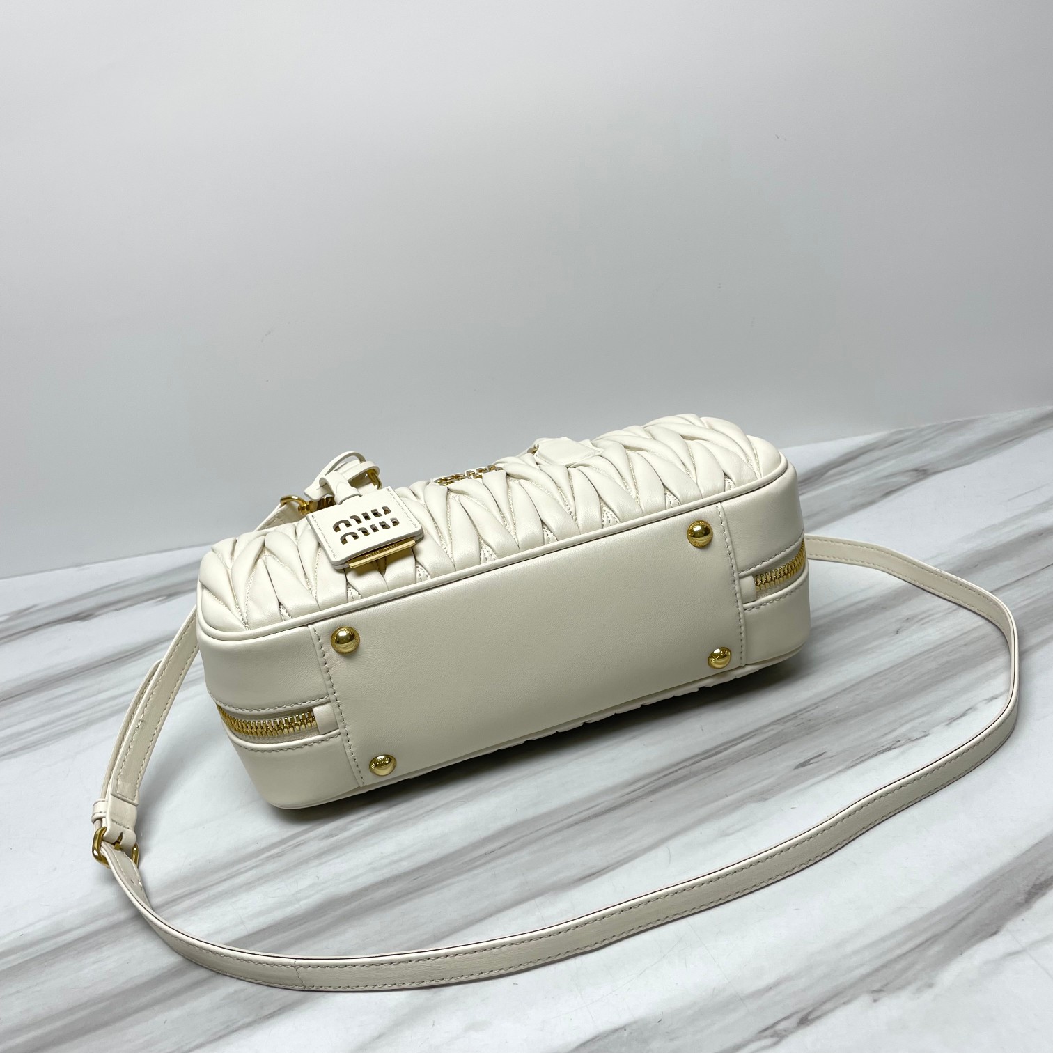 - Herrajes en tono dorado