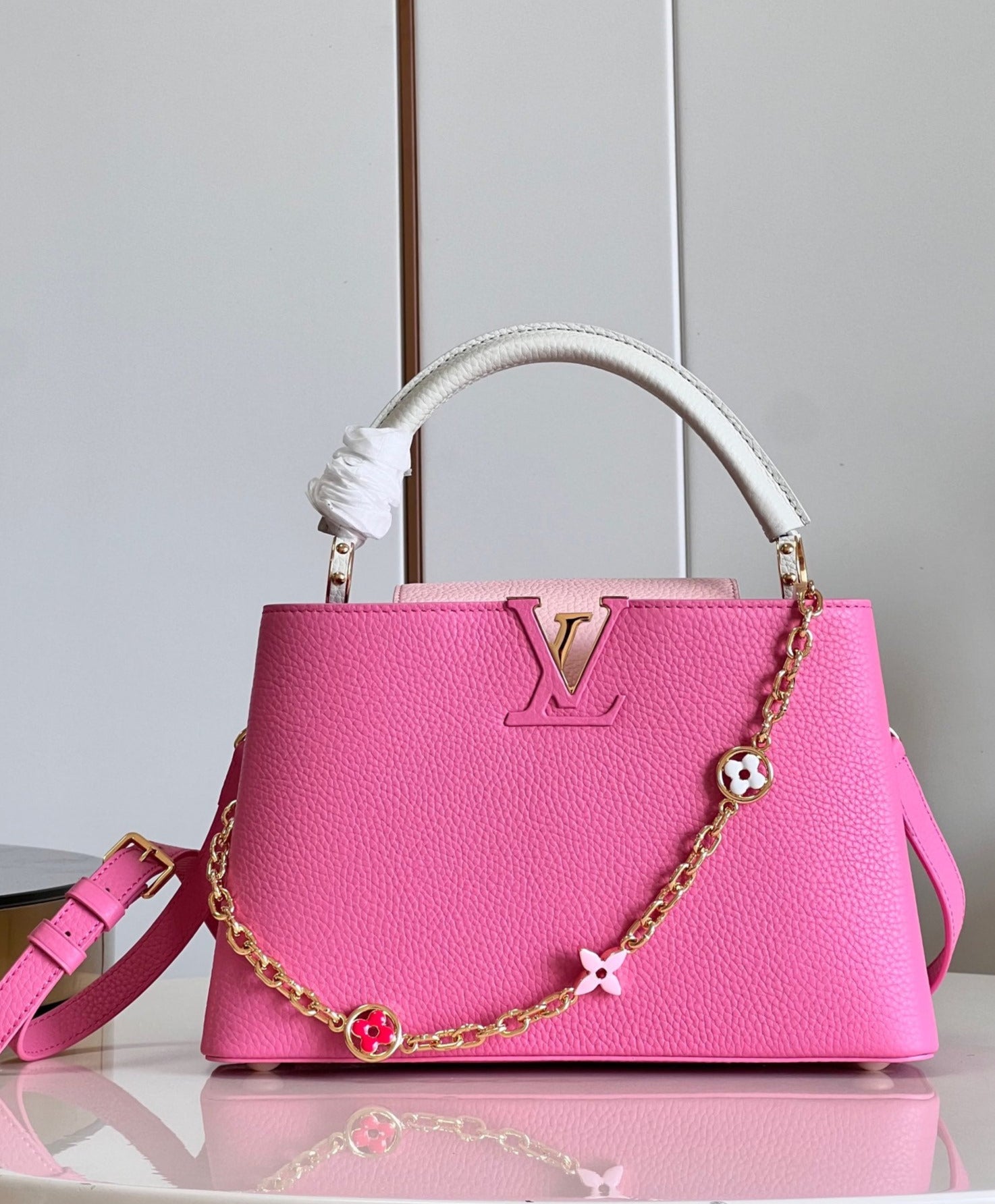 - Pieza metálica Monogram Flower en la solapa