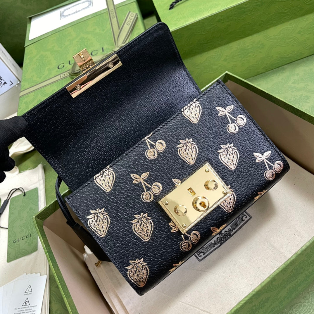 Bolso de hombro Padlock pequeño con frutasBolso de hombro Padlock pequeño con frutas