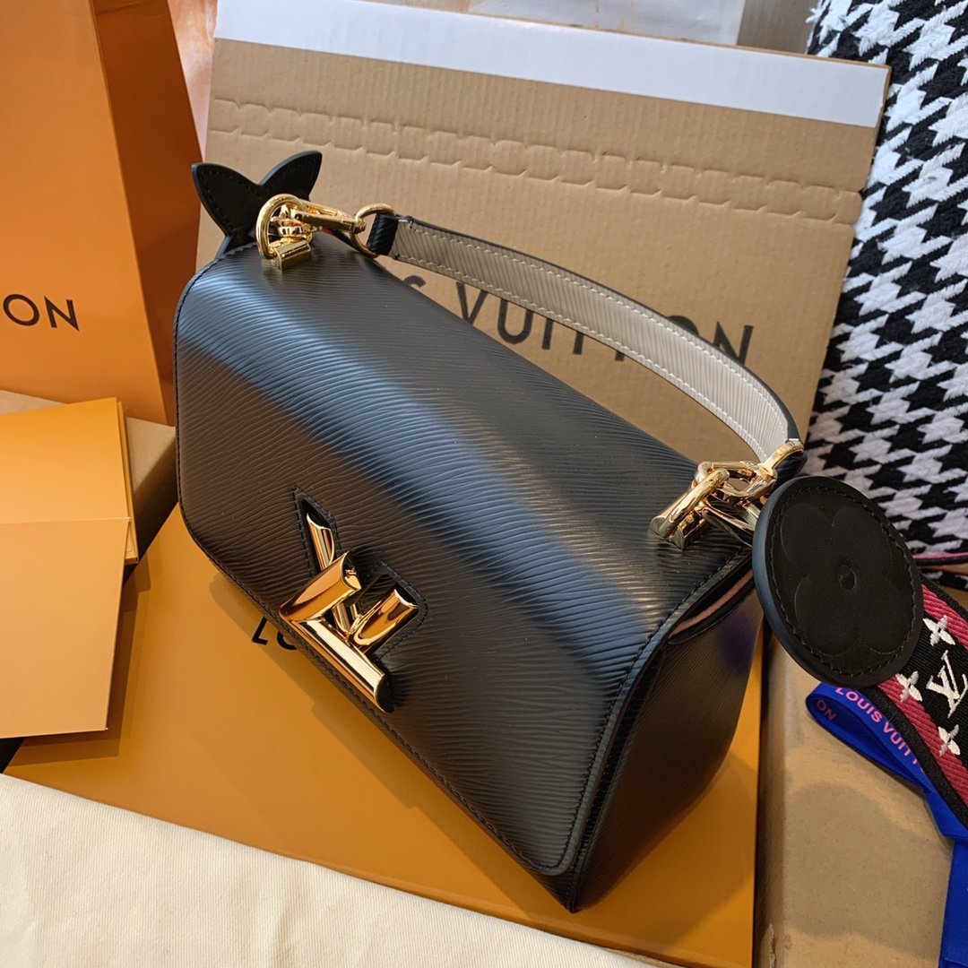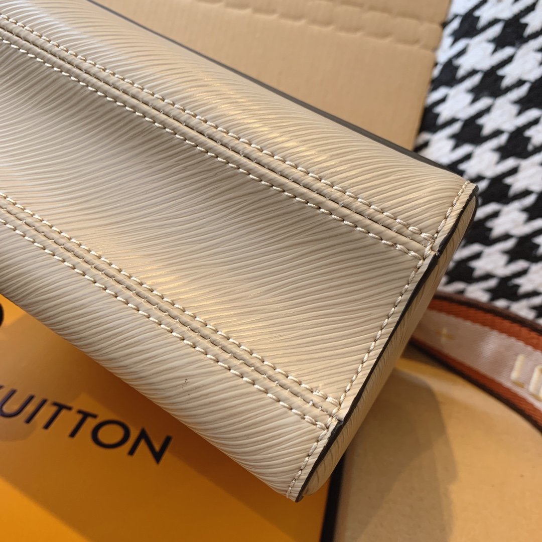 - Ribete en piel lisa, satén bordado y piel Epi