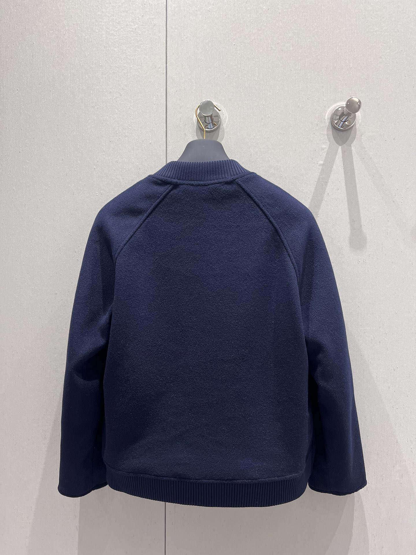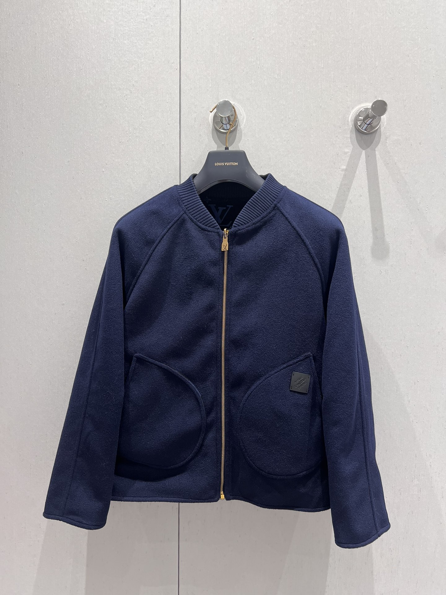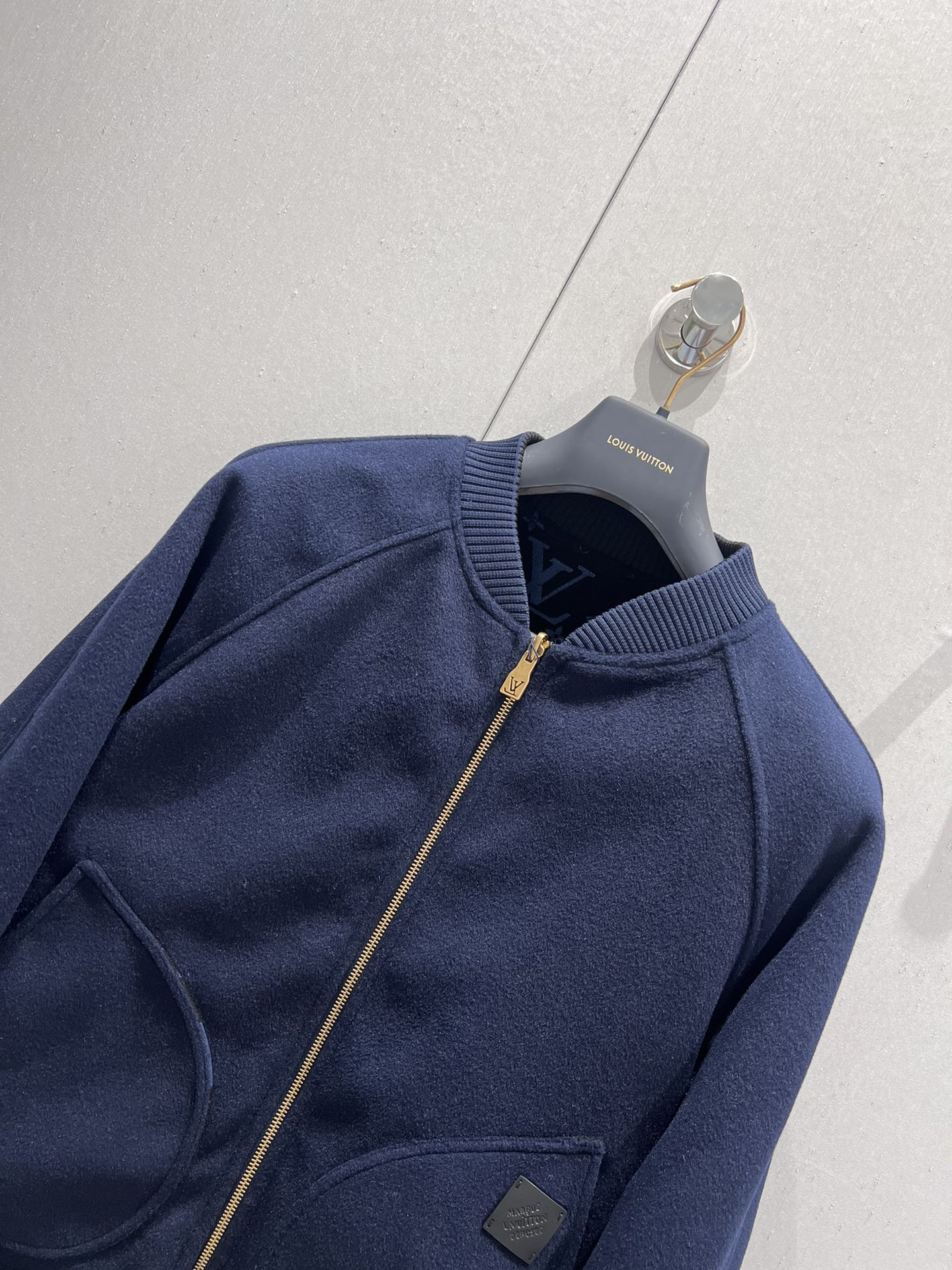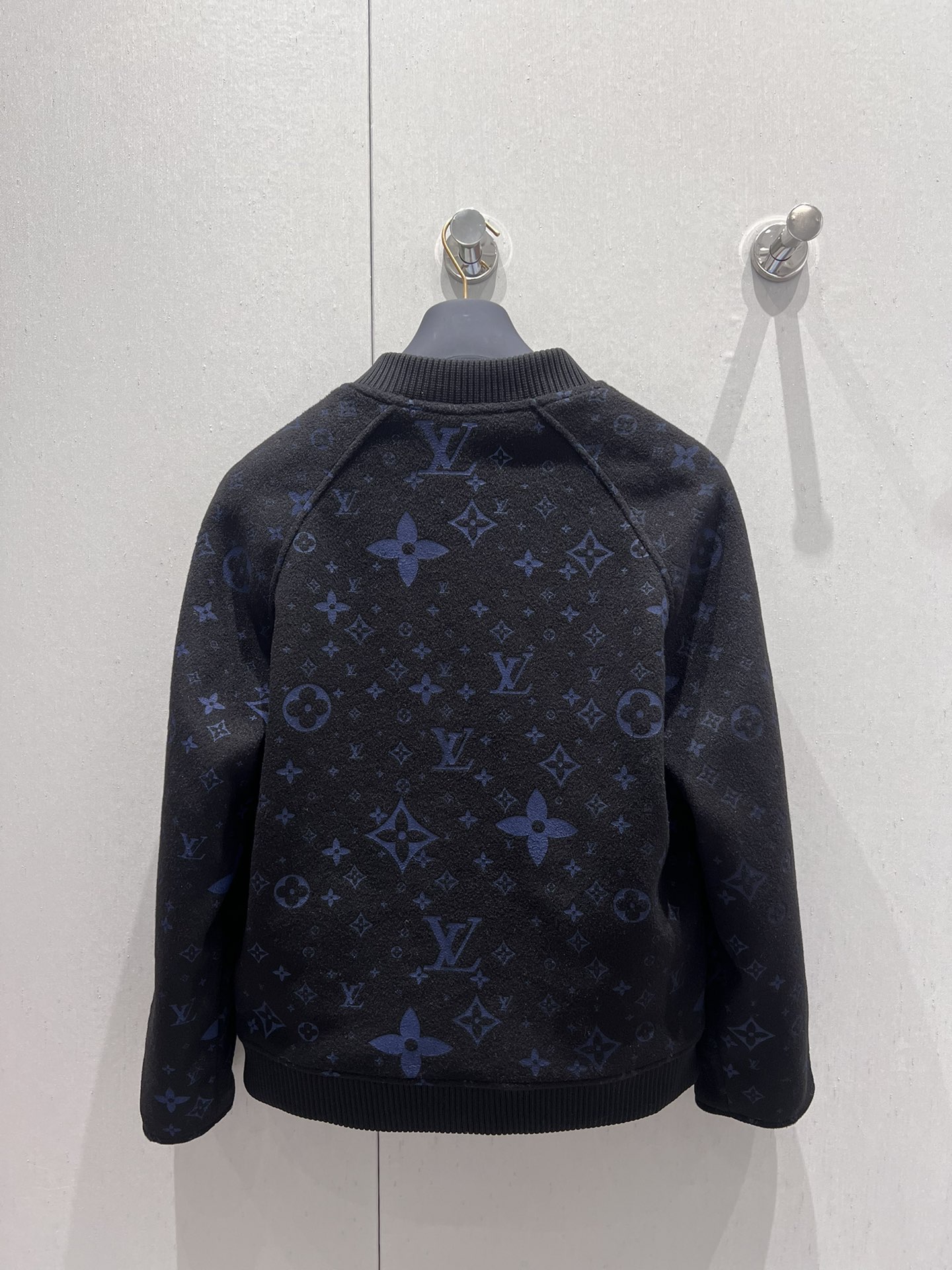 La prenda presenta un cuello de punto elástico, bajo y puños de tejido Monogram y un cierre de cremallera doble con un ribete de punto en la cara estampada.