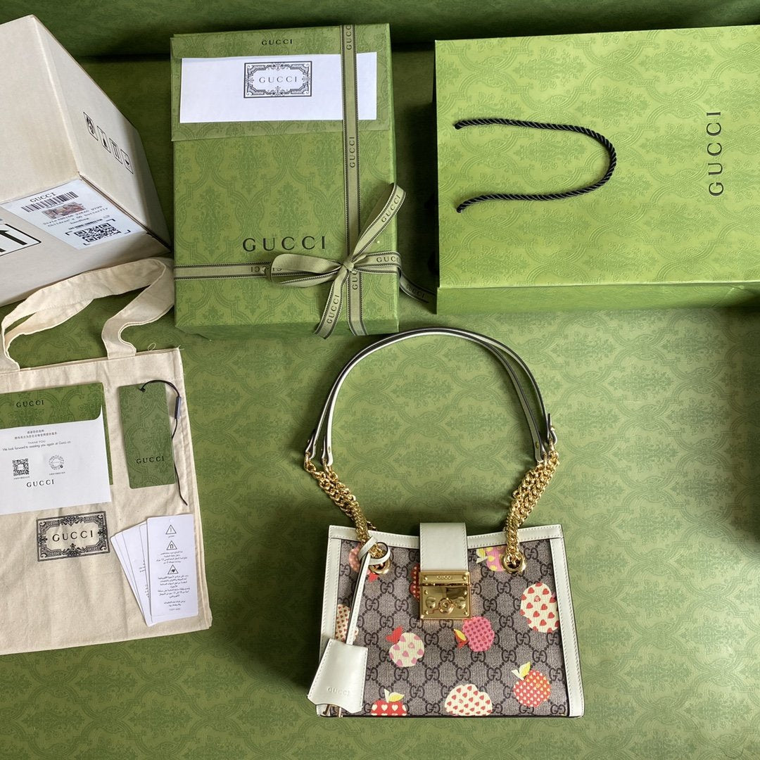 Bolso tote Padlock pequeño con diseño frutal GUCCI