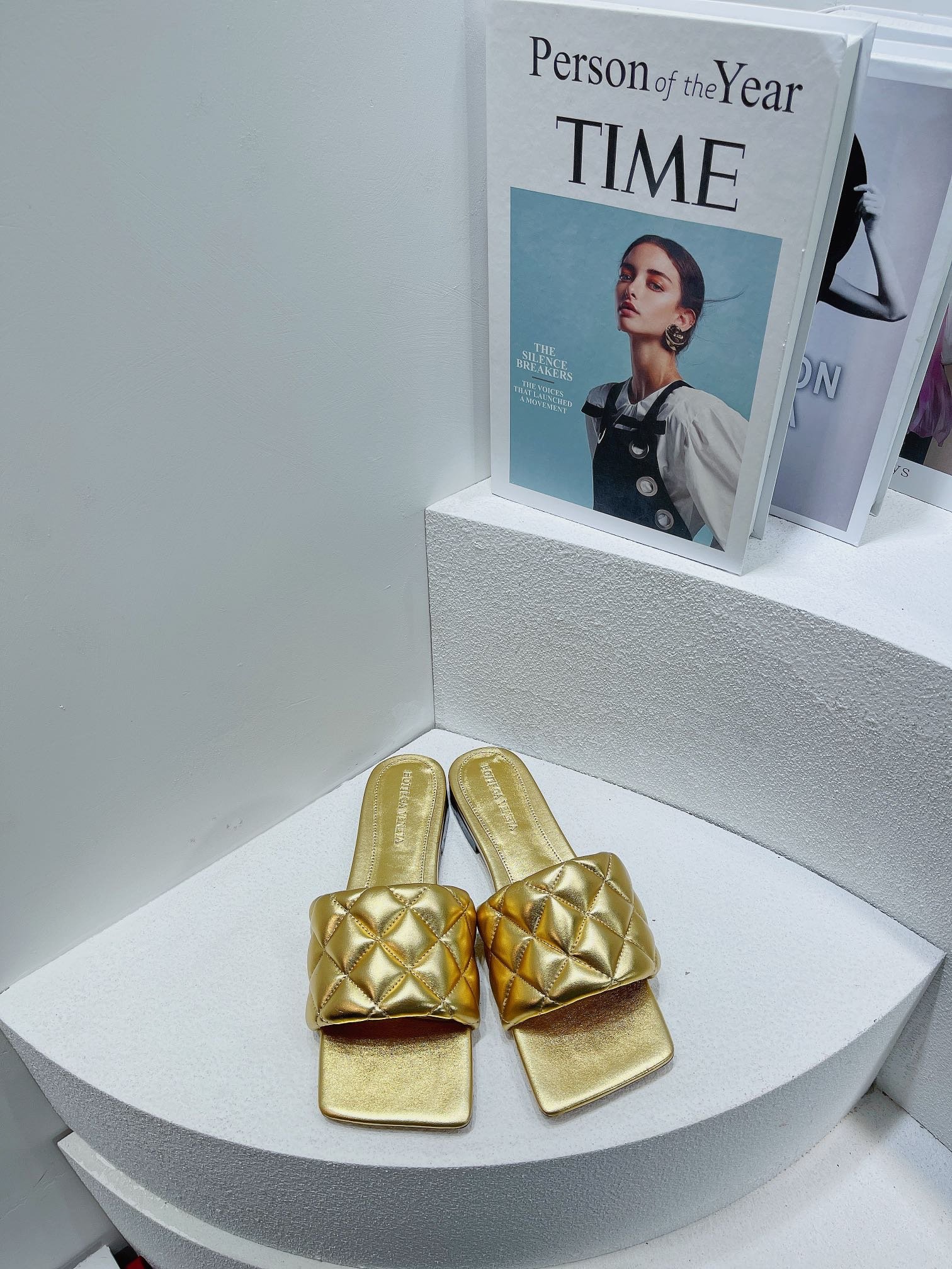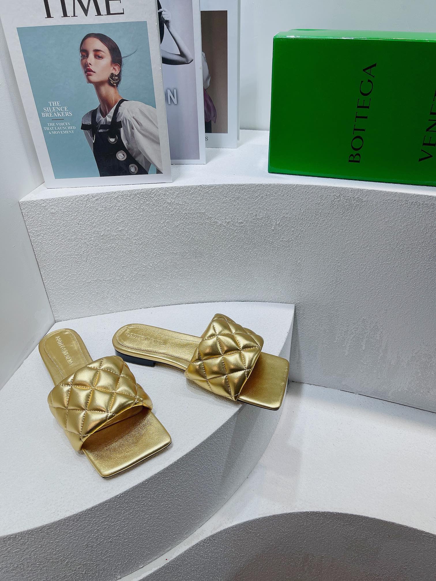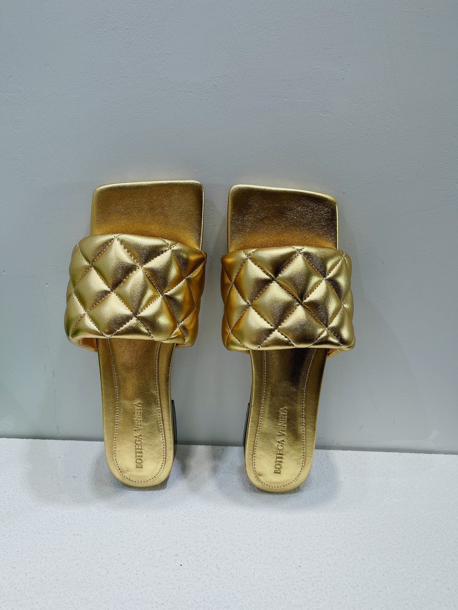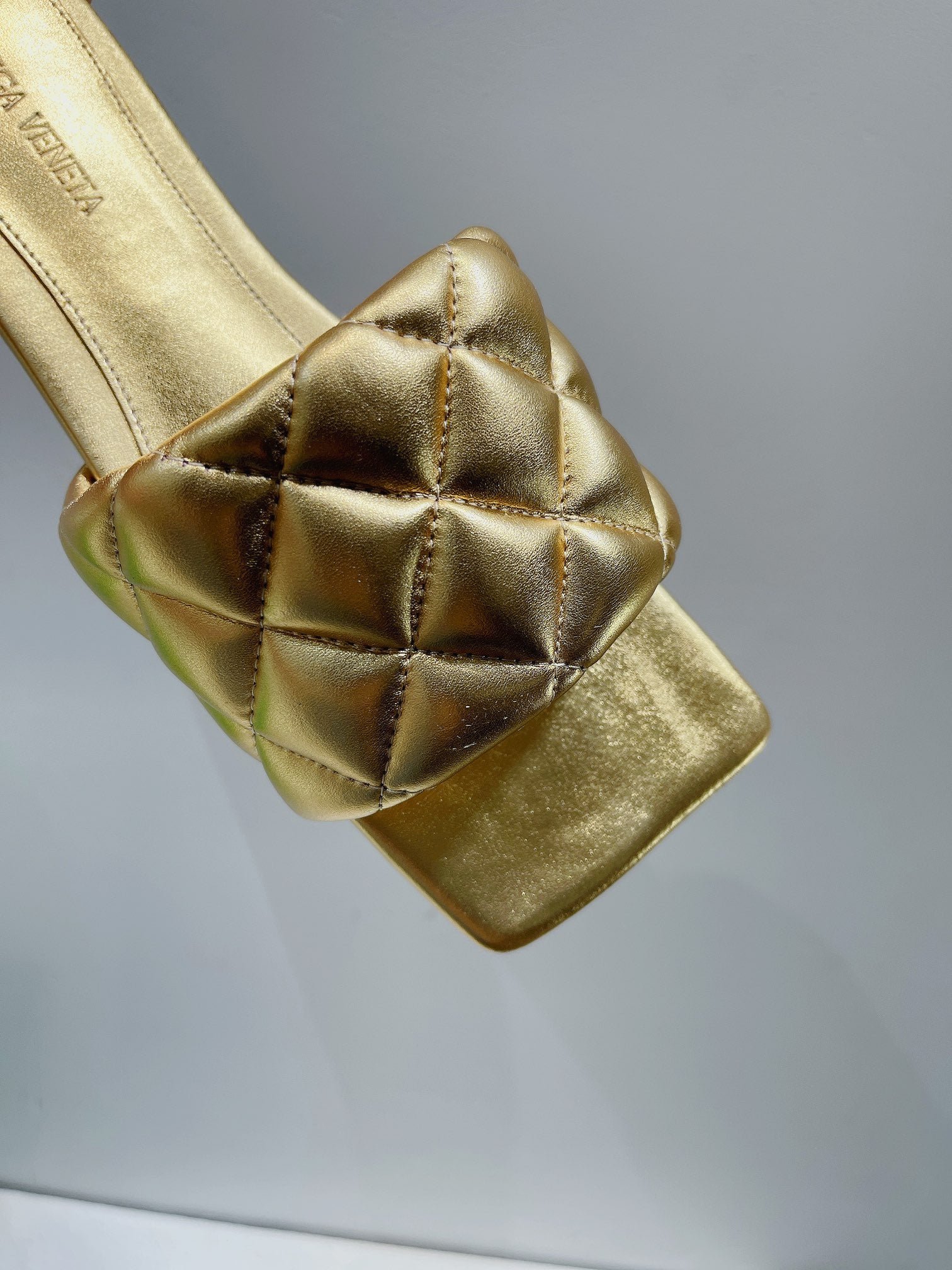 • Sandalias planas de cuero metálico acolchadas