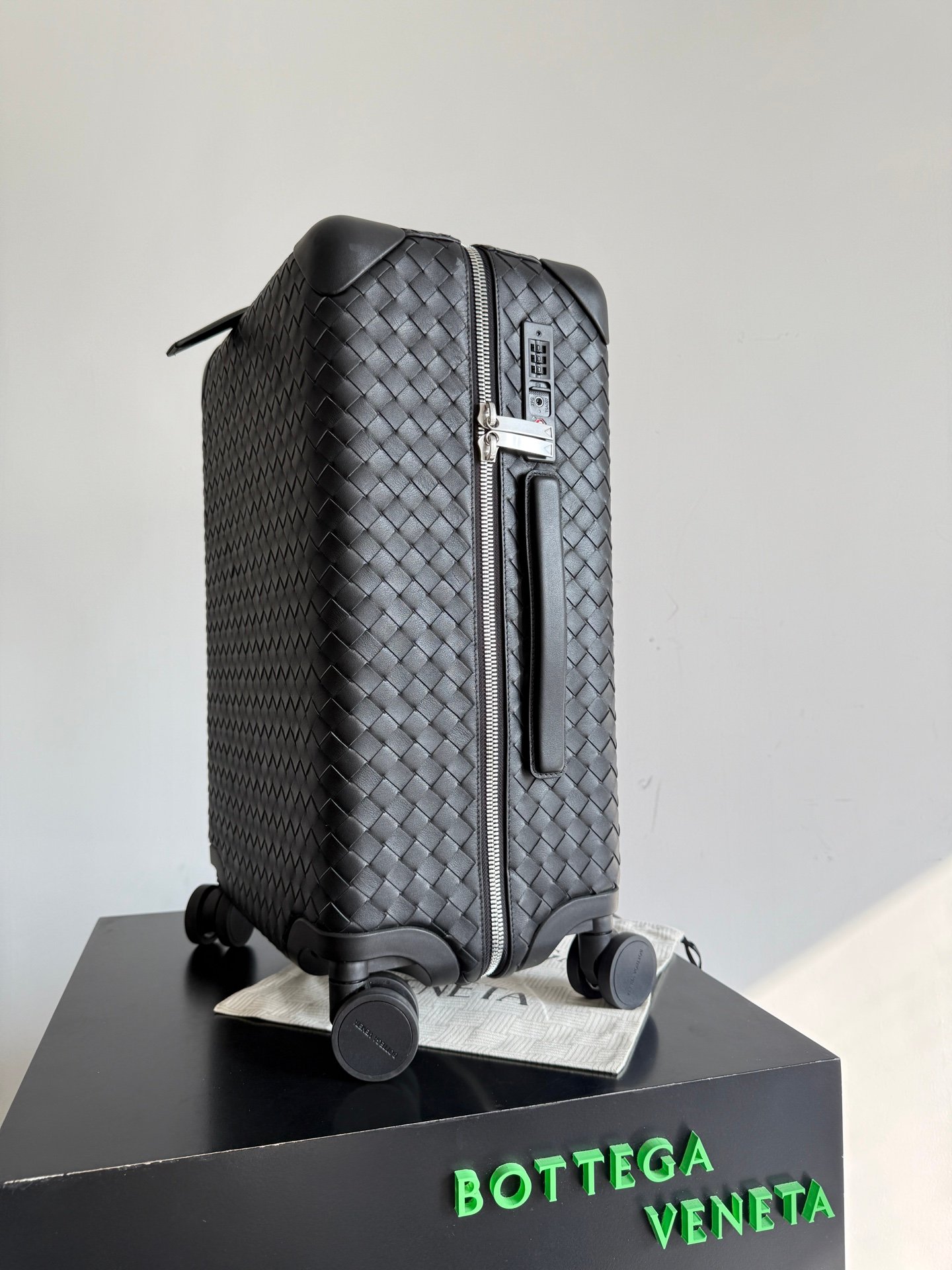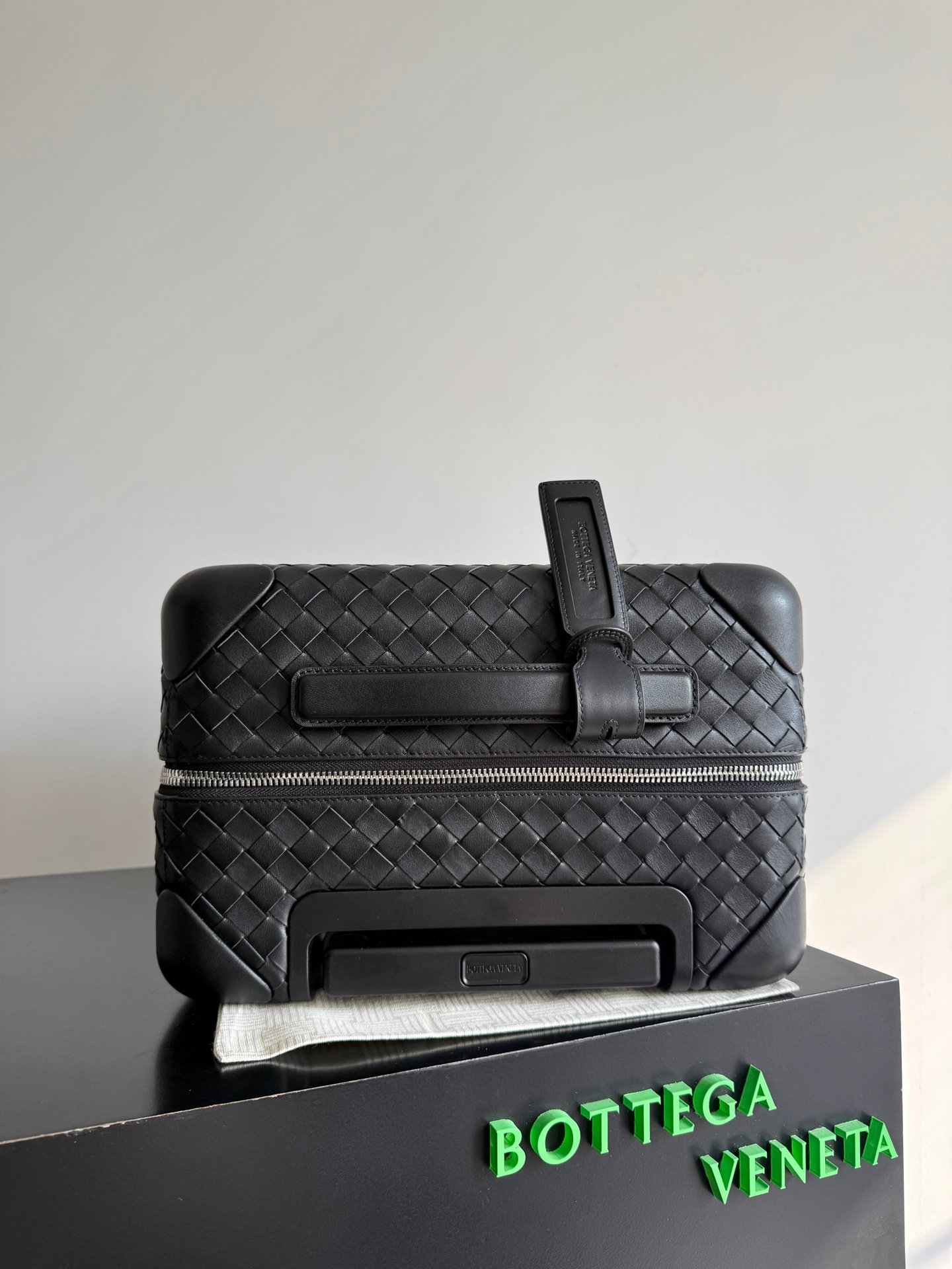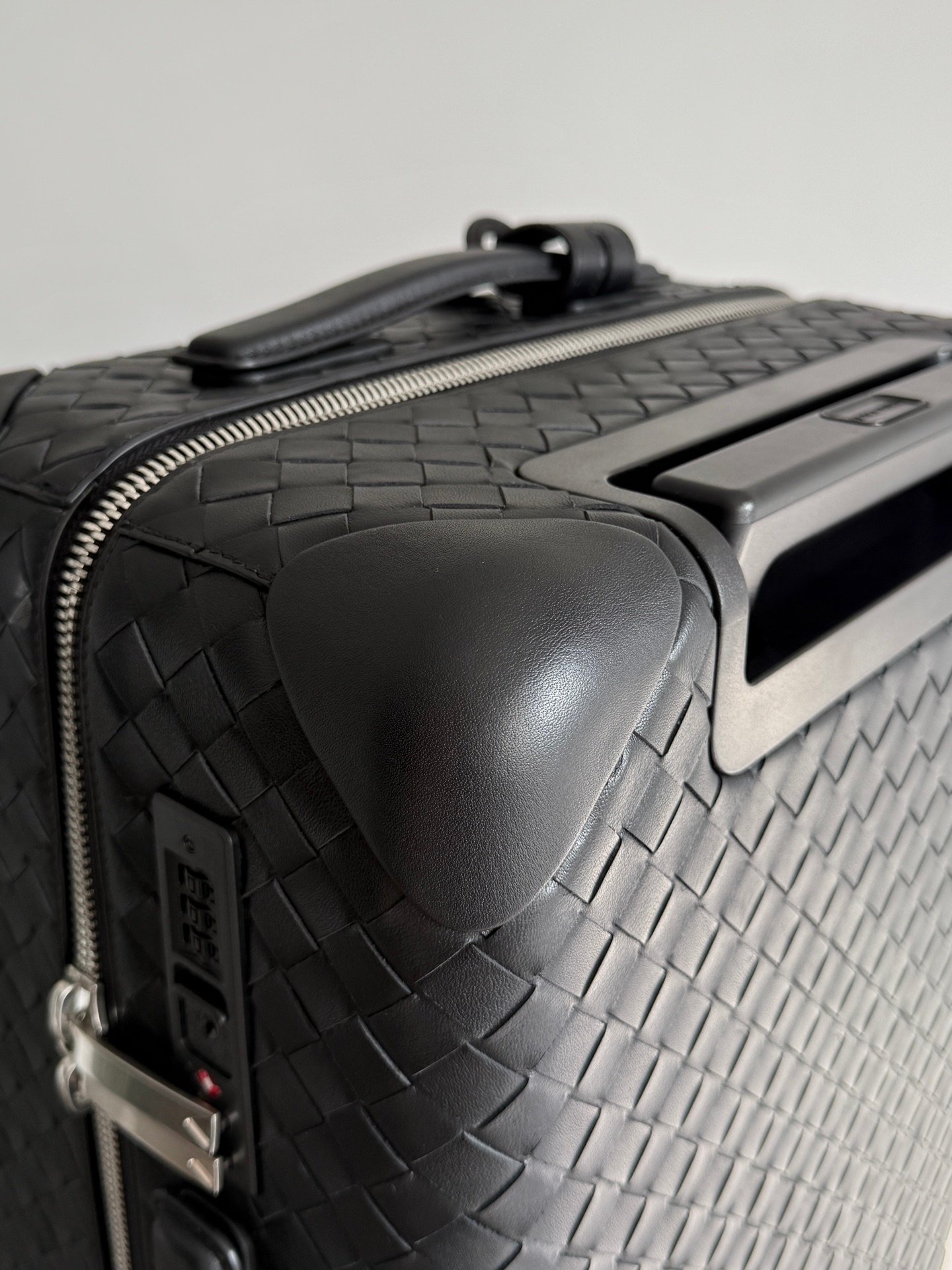 Carro de cabina con carcasa de ABS duradera y moldeada a medida envuelta en cuero de becerro Intrecciato flexible