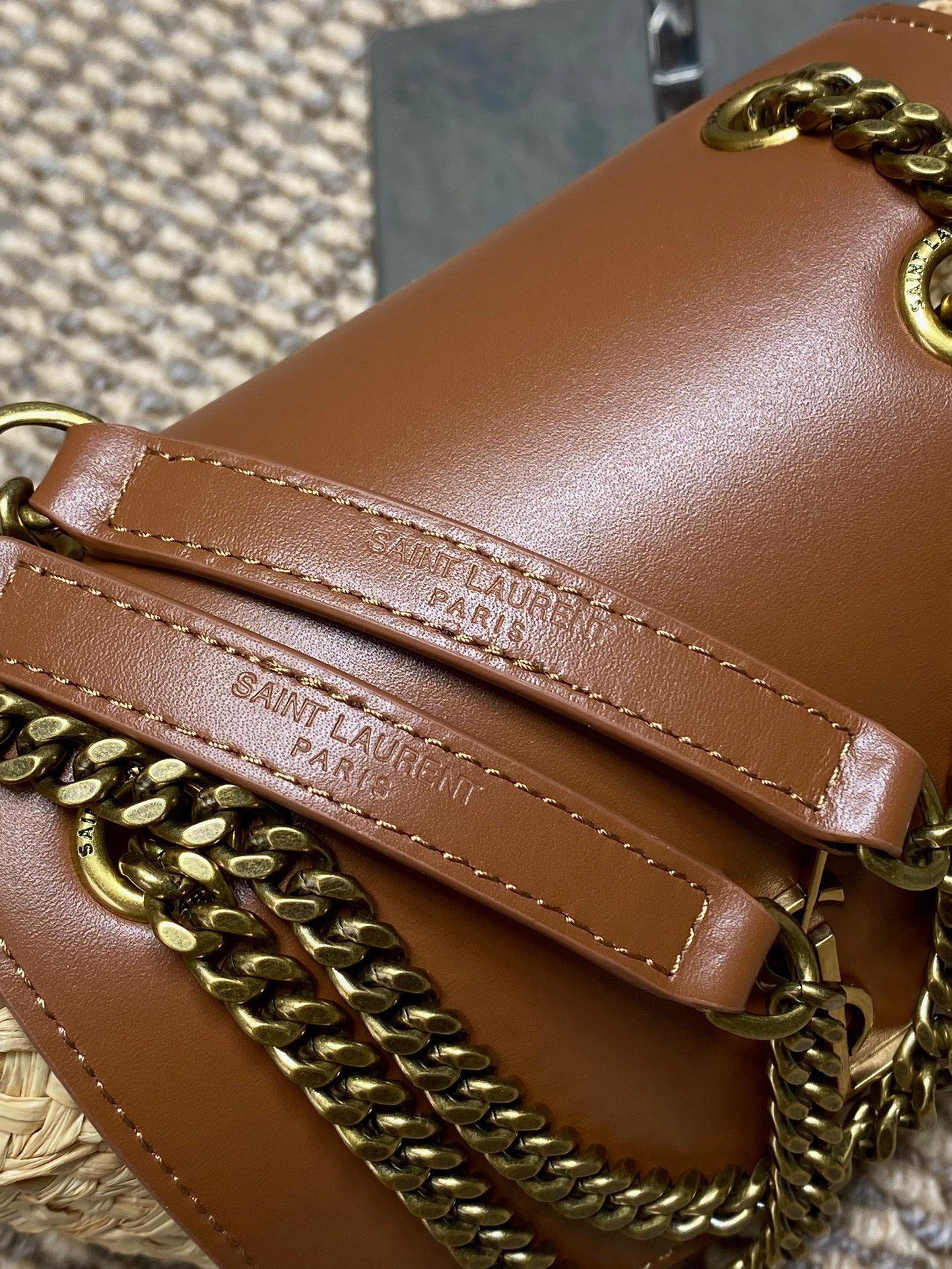 - Correa de piel y cadena al hombro