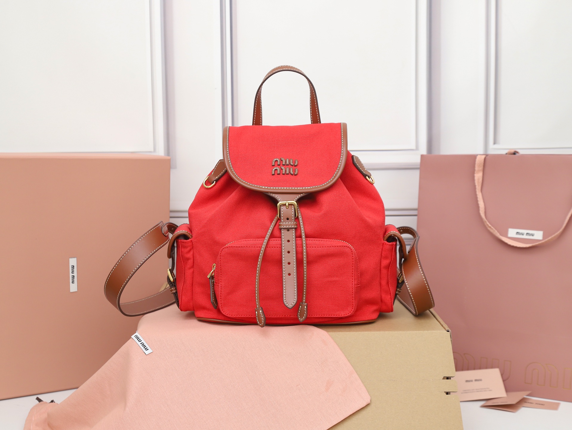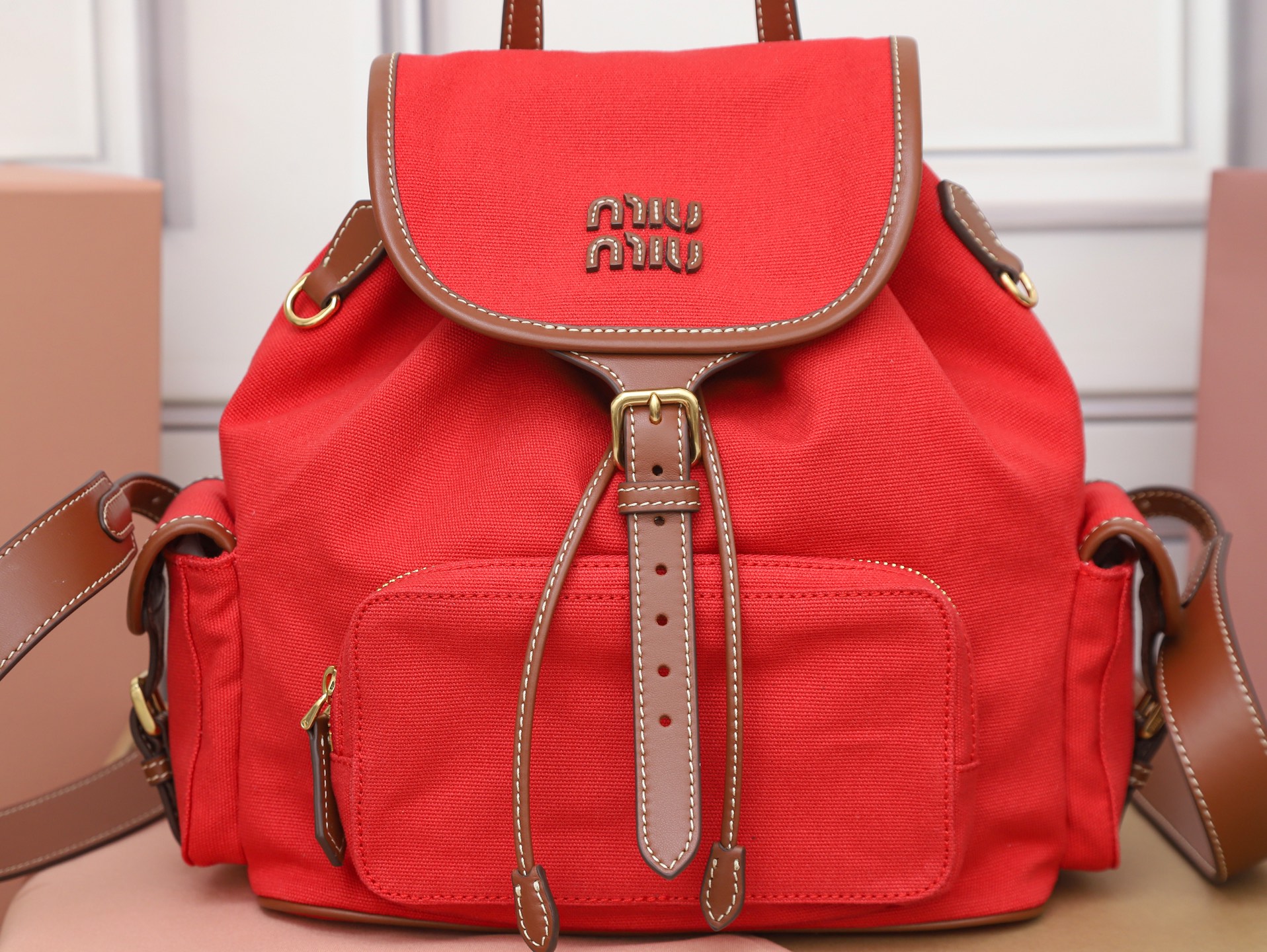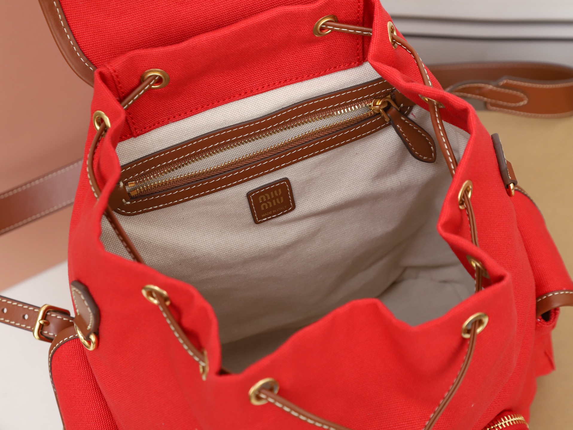 - Interior en mezcla de lino con bolsillo con cremallera.