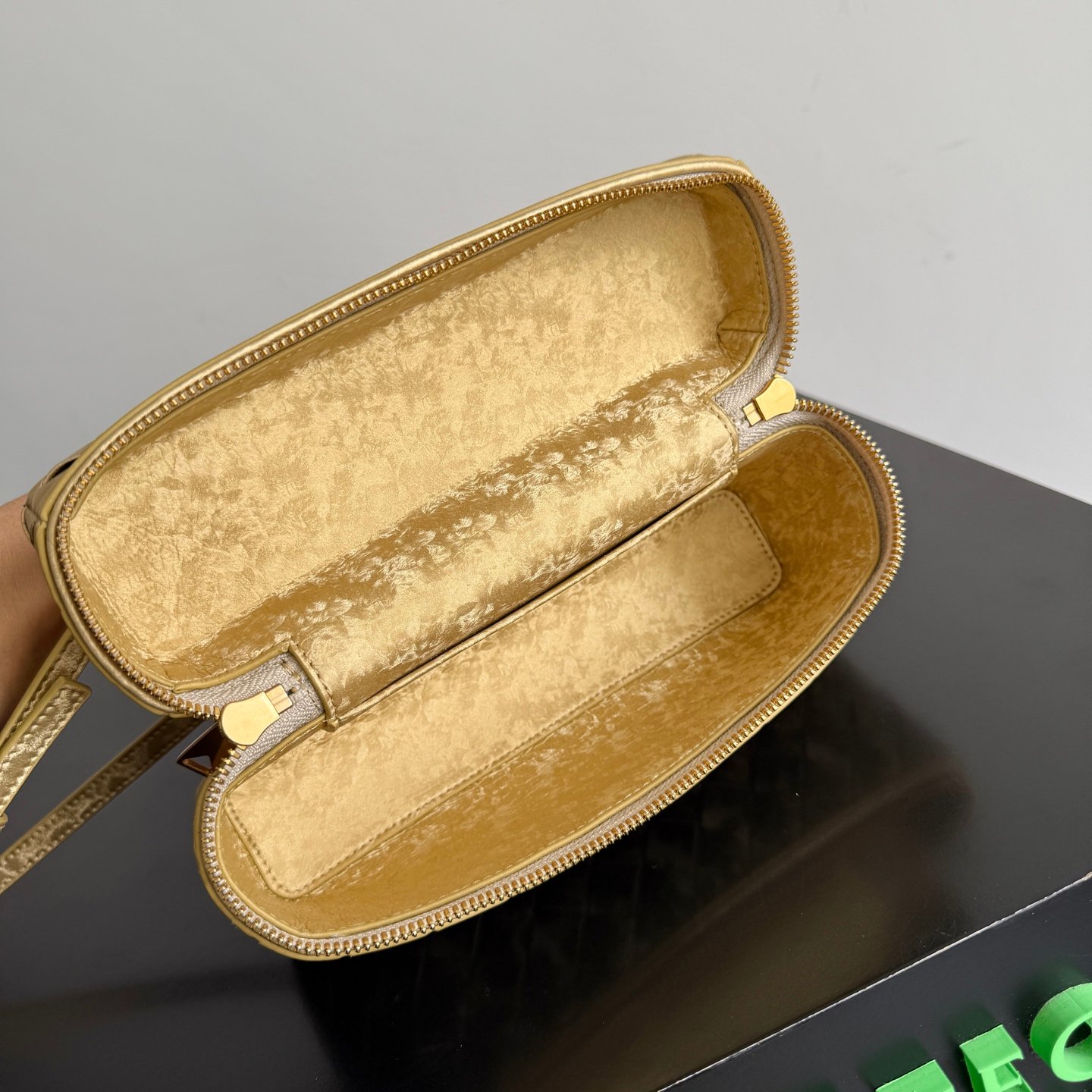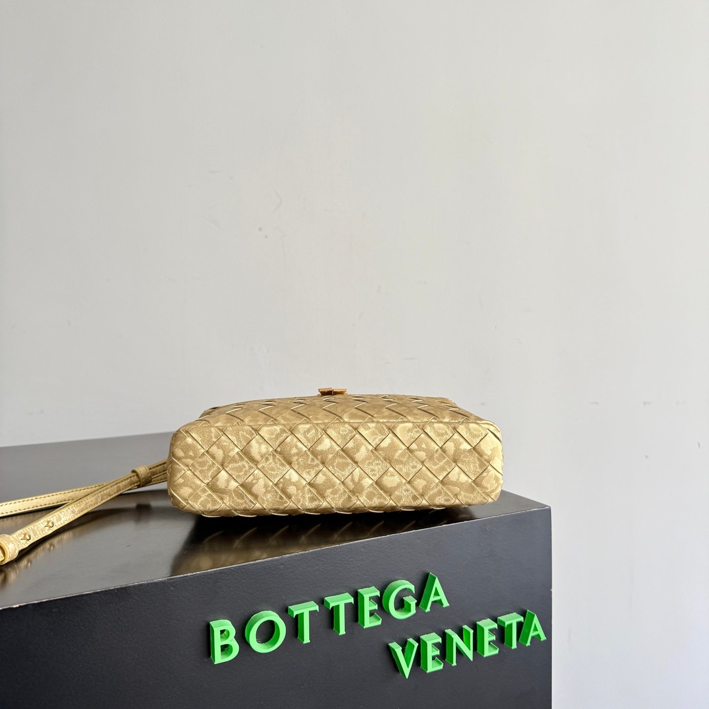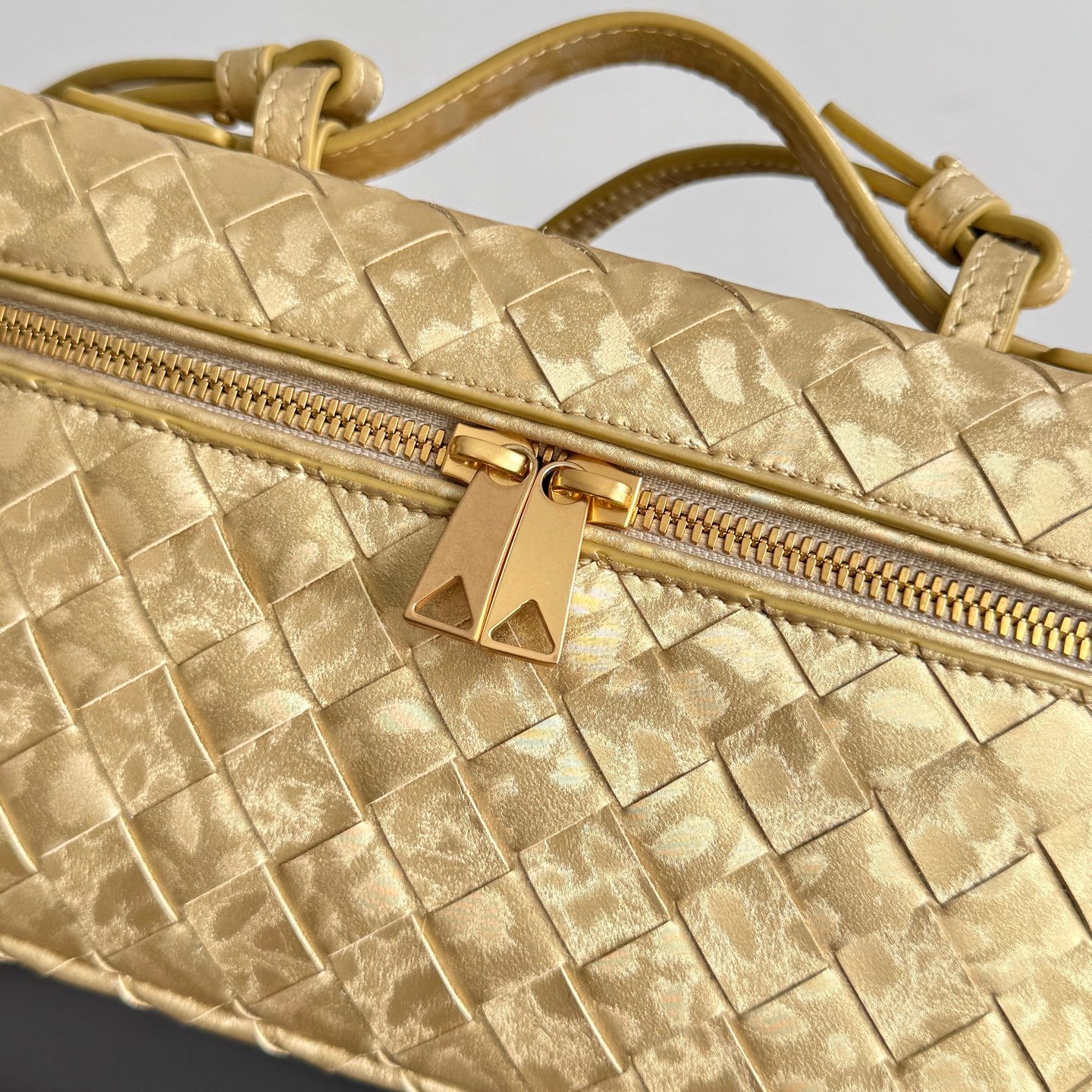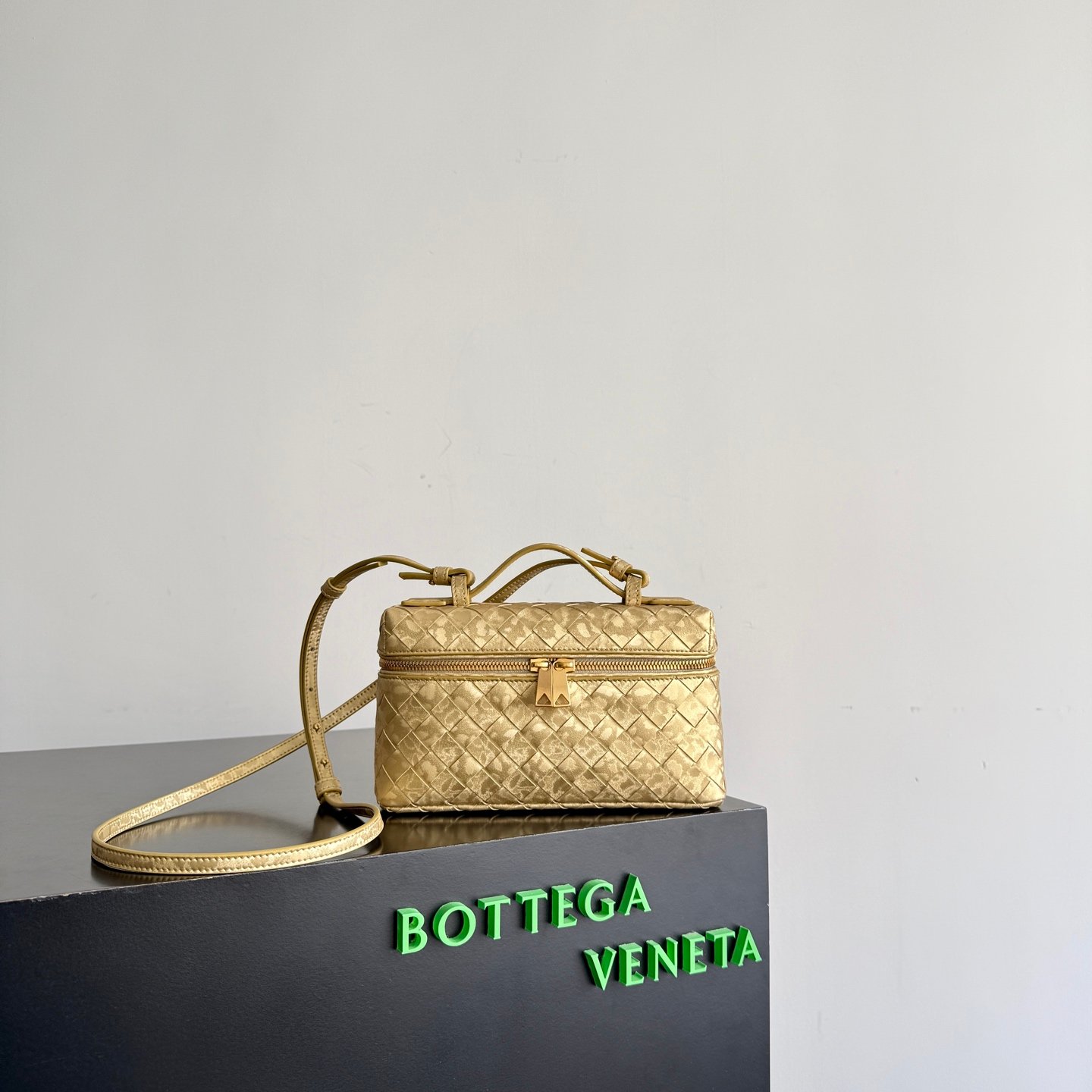 Neceser de piel laminada satinada con motivo Intrecciato y correa extraíble
