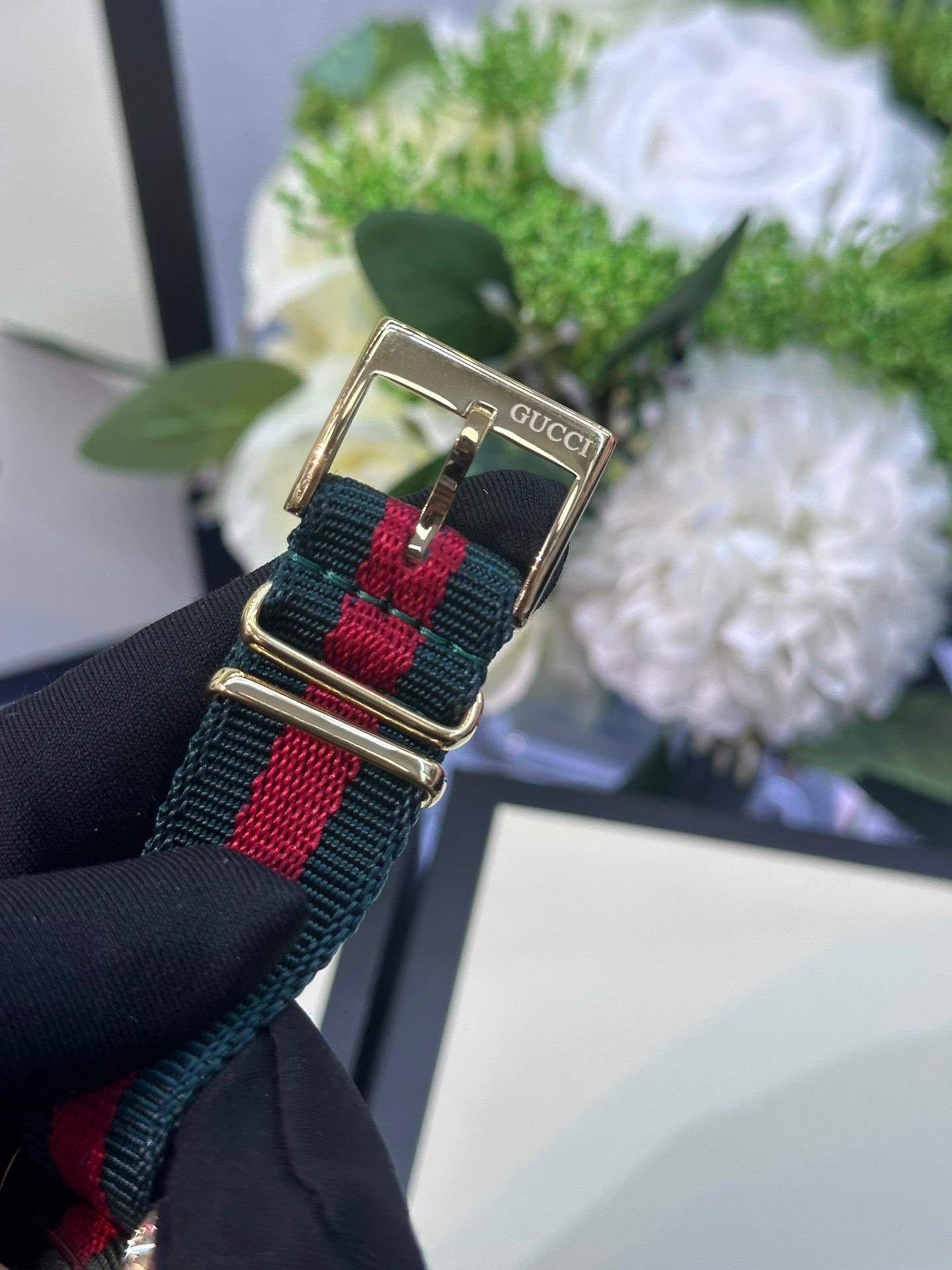 Esfera de 3,8 cm con abeja dorada, correa de tela color rojo y verde Gucci